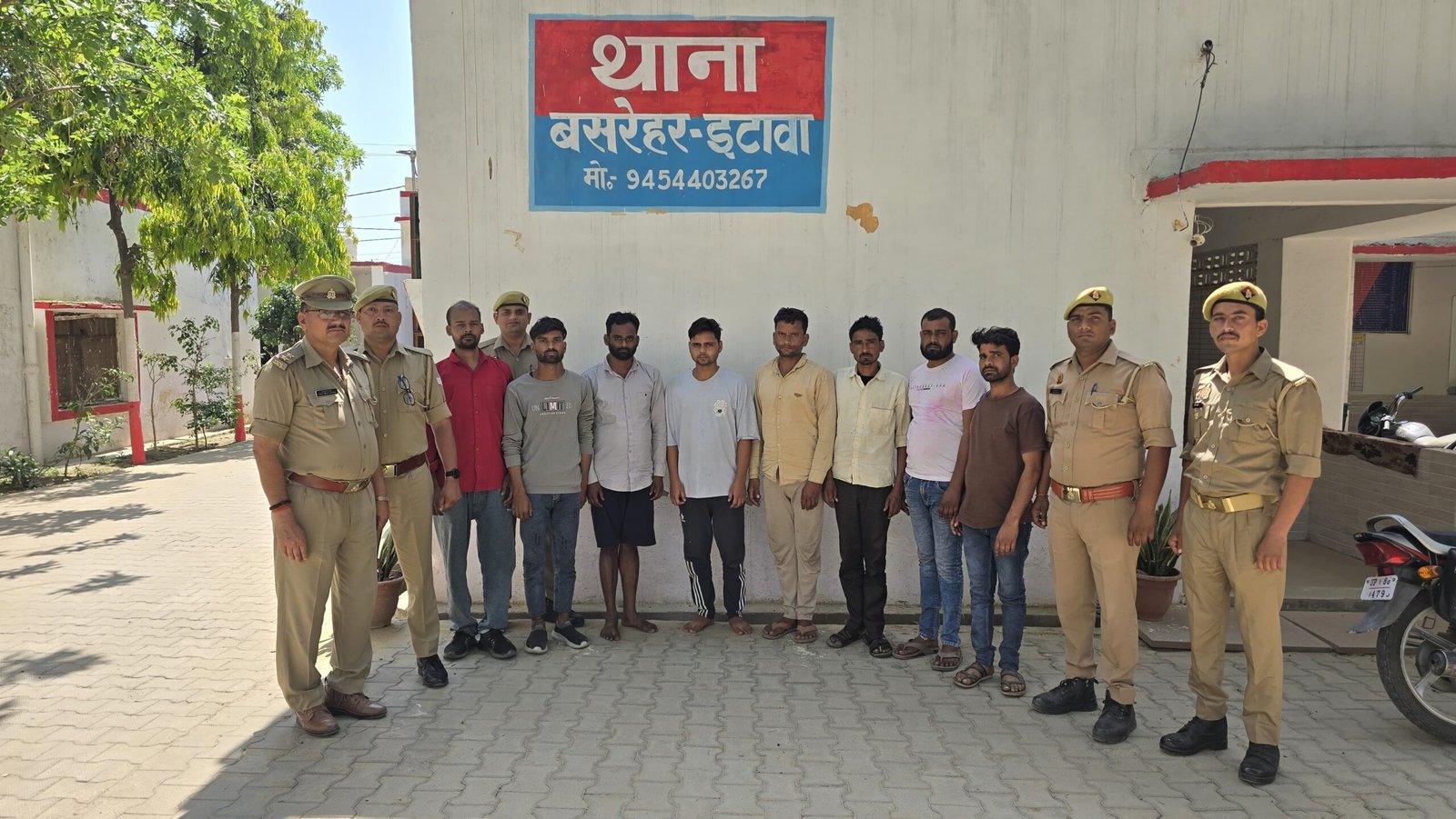 बसरेहर पुलिस की बड़ी कार्रवाई: जुआ खेल रहे 8 आरोपी पुलिस ने किया गिरफ्तार, नगदी व सामान बरामद