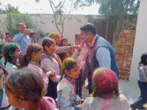 ​समारोह के दौरान बच्चों को प्यार और दुलार देते हुए प्रबंधक डॉ. कैलाश चंद्र यादव ने होली के वास्तविक महत्व पर प्रकाश डाला। उन्होंने कहा कि यह त्योहार केवल रंगों का मेल नहीं, बल्कि आपसी कटुता को भुलाकर प्रेम और सौहार्द बढ़ाने का माध्यम है। उन्होंने बच्चों को सुरक्षित होली खेलने का मंत्र देते हुए विशेष रूप से सलाह दी कि वे केवल उच्च गुणवत्ता वाले और सुरक्षित रंगों का ही प्रयोग करें ताकि किसी के स्वास्थ्य को नुकसान न पहुँचे। उन्होंने मिलावटी और हानिकारक रसायनों से दूर रहकर प्राकृतिक तरीके से खुशियां बांटने की अपील की। कार्यक्रम के समापन पर प्रबंधक महोदय ने सभी विद्यार्थियों, उनके अभिभावकों और पूरे विद्यालय परिवार को होली की आत्मीय शुभकामनाएं देते हुए उनके उज्ज्वल भविष्य की कामना की।