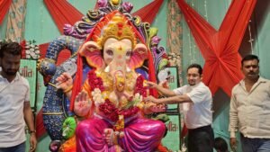 डॉ. वर्मा ने पंडाल में पहुंचकर भगवान गणेश की प्रतिमा पर फूलमाला चढ़ाई, उनकी आरती की और भोग भी लगाया। इसके बाद उन्होंने श्री गमा देवी मंदिर में भी आरती की।