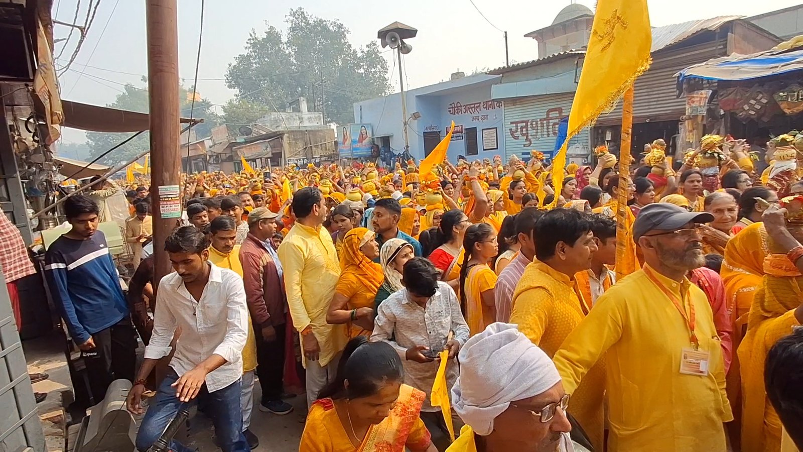 पीतवस्त्र धारण किए, भक्ति और श्रद्धा में रची-बसी यह यात्रा मानो देवत्व का मूर्त स्वरूप बन गई, जिसने नगर के कण-कण में अध्यात्म की गूंज भर दी।