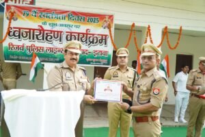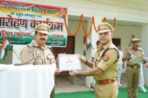 एसएसपी बृजेश कुमार श्रीवास्तव ने कहा कि पुलिस बल का कर्तव्य केवल कानून का पालन करवाना ही नहीं, बल्कि समाज में सुरक्षा और शांति का वातावरण बनाए रखना भी है । जनपदीय पुलिस ने कानून-व्यवस्था को सुदृढ़ बनाए रखने, अपराधों पर अंकुश लगाने और अपराधियों को न्याय के कटघरे में लाने में सराहनीय कार्य किया है । वरिष्ठ पुलिस अधीक्षक इटावा द्वारा स्वतंत्रता दिवस 2025 के अवसर पुलिस विभाग मे सराहनीय कार्य करने वाले पुलिसकर्मियों को प्रशस्ति पत्र देकर सम्मानित किया गया।