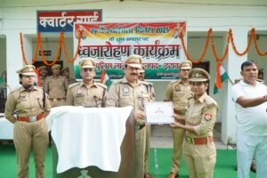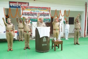स्वतंत्रता दिवस के अवसर पर वरिष्ठ पुलिस अधीक्षक बृजेश कुमार श्रीवास्तव द्वारा पुलिस लाइन क्वार्टर गार्ड पर ध्वजारोहण कर राष्ट्रीय ध्वज को सलामी दी गई तथा राष्ट्रगान गायन किया गया ।