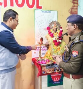 ​कार्यक्रम की शुरुआत मुख्य अतिथि और विद्यालय प्रबंधन द्वारा सरस्वती माता की प्रतिमा पर दीप प्रज्वलित कर माल्यार्पण के साथ हुई। इसके उपरांत, सरस्वती वंदना प्रस्तुत की गई, जिसने कार्यक्रम को औपचारिक रूप से आगे बढ़ाया।